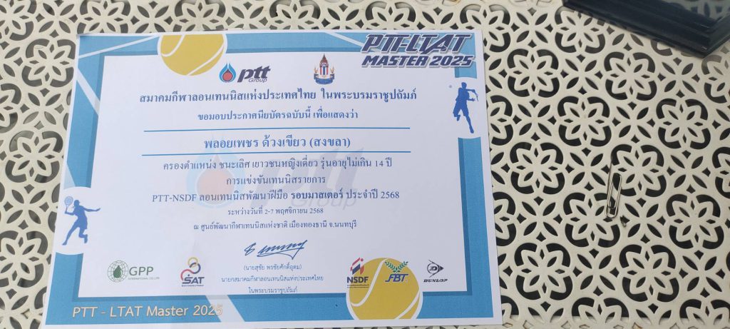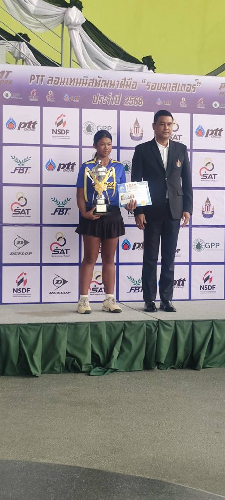 ขอแสดงความยินดีกับ น้องพลอยเพชร ด้วงเขียว นักเรียนชั้น ม.2ข ที่ได้ครองตำแหน่ง ชนะเลิศ เยาวชนหญิงเดี่ยว รุ่นอายุไม่เกิน 14 ปี การแข่งขันเทนนิสรายการ PPT-NSDF ลอนเทนนิสพัฒนาฝีมือ รอบมาสเตอร์ ประจำปี 2568 ระหว่างวันที่ 2 – 7 พฤศจิกายน 2568 ณ ศูนย์พัฒนากีฬาเทนนิสแห่งชาติ เมืองทองธานี จังหวัดนนทบุรี